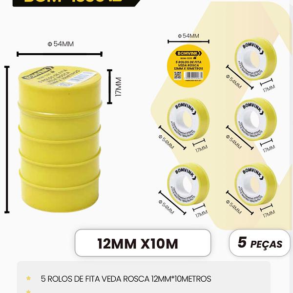5 ROLOS DE FITA VEDA ROSCA 12MM*1OMETROS
