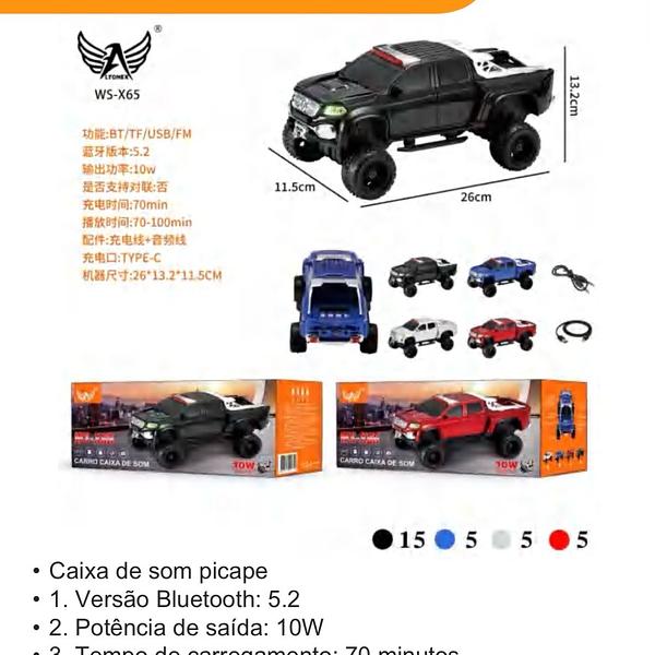 Info: Bluetooth, Multimídia, USB, FM,TF, TWS,AUX Potência: 15W